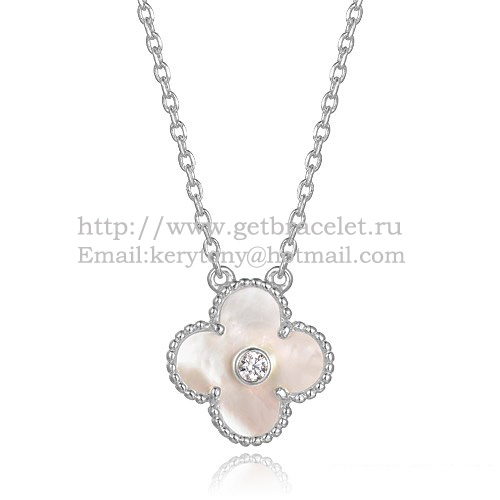 Van Cleef Arpels Alhambra-Anhänger aus Weißgold mit runden Diamanten aus weißem Perlmutt