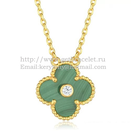 Van Cleef Arpels Alhambra-Anhänger aus Gelbgold mit runden Malachit-Perlmuttdiamanten