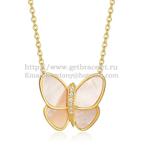 Van Cleef Arpels Halskette mit fliegendem Schmetterlingsanhänger aus Gelbgold mit weißen Perlmuttdiamanten
