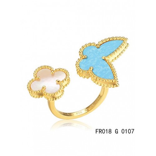 Van Cleef Arpels Luck Alhambra Between The Finger Ring Gelbgold Türkis mit Perlmutt