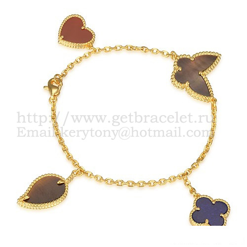 Van Cleef Arpels Lucky Alhambra 4 Motifs Armband Gelbgold mit Steinkombination 002