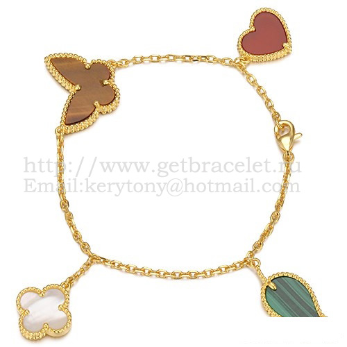Van Cleef Arpels Lucky Alhambra 4 Motive Armband Gelbgold mit Steinkombination 003
