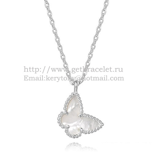 Van Cleef Arpels Lucky Alhambra Schmetterlingshalskette aus Weißgold mit weißem Perlmutt