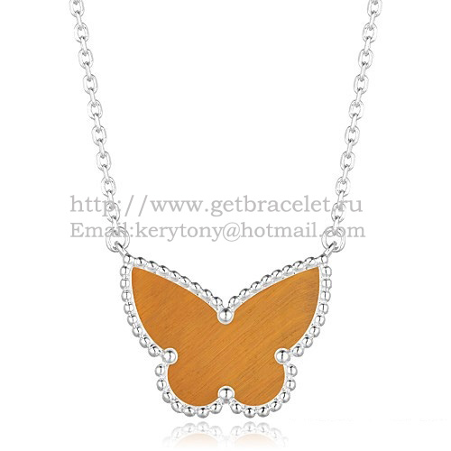 Van Cleef Arpels Lucky Alhambra Schmetterlingsanhänger aus Weißgold mit Tigerauge-Perlmutt