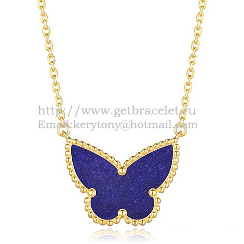 Van Cleef Arpels Lucky Alhambra Schmetterlingsanhänger aus Gelbgold mit Lapis-Stein und Perlmutt