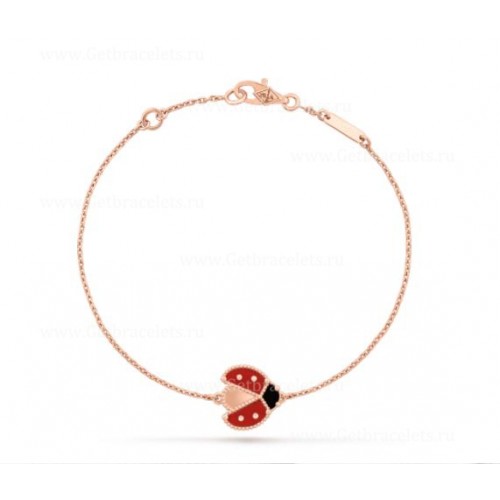 Van Cleef Arpels Lucky Long Armband mit offenen Flügeln, Marienkäfer, Roségold, Karneol-Onyx