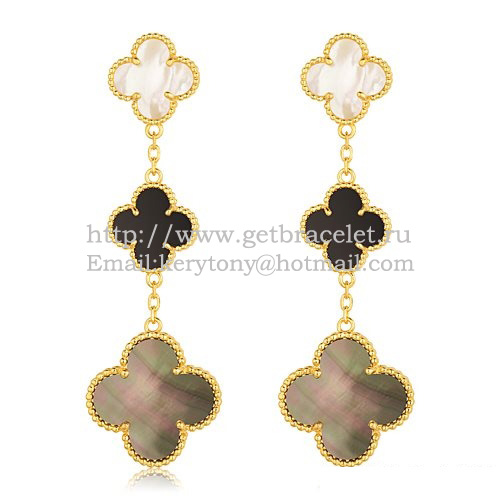 Van Cleef Arpels Magic Alhambra 3 Motive Ohrringe Gelbgold mit Steinkombination