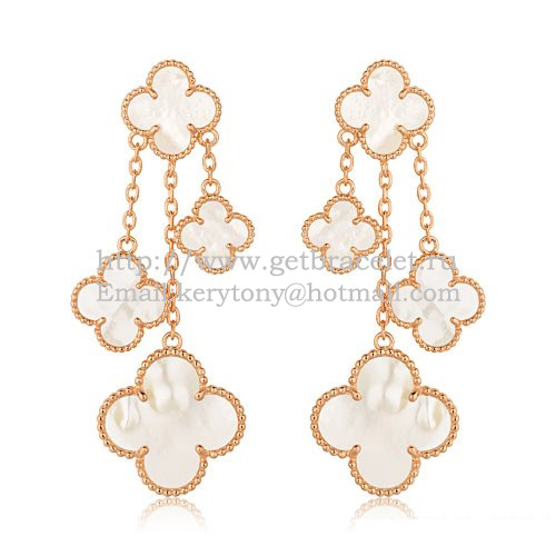 Van Cleef Arpels Magic Alhambra 4 Motive Ohrringe aus Roségold mit weißem Perlmutt