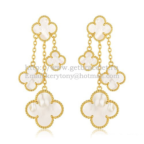 Van Cleef Arpels Magic Alhambra 4 Motive Ohrringe Gelbgold mit weißem Perlmutt