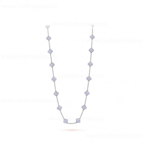 Van Cleef Arpels Magic Alhambra Lange Halskette mit 20 Motivanhängern aus Weißgold und Chalcedon