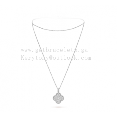 Van Cleef Arpels Magic Alhambra Lange Halskette aus Weißgold mit Pavé-Diamanten