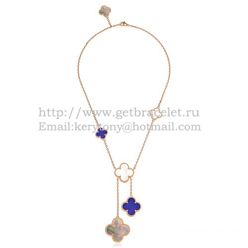 Van Cleef Arpels Magic Alhambra Halskette aus Roségold, 6 Motive mit grau-weißem Lapis-Perlmutt