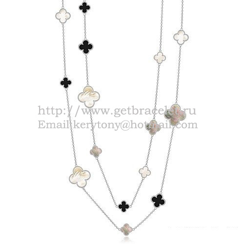 Van Cleef Arpels Magic Alhambra Halskette Weißgold 16 Motive mit schwarzem Achat weißgrauem Perlmutt