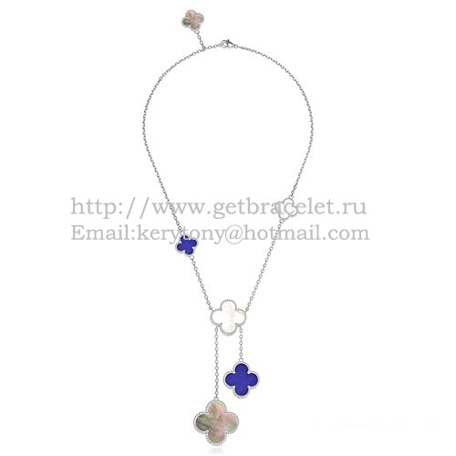 Van Cleef Arpels Magic Alhambra Halskette Weißgold 6 Motive mit grauweißem Lapis-Perlmutt