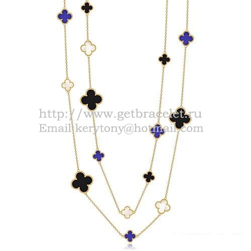 Van Cleef Arpels Magic Alhambra Halskette Gelbgold 16 Motive mit schwarzem Onyx Lapisweißem Perlmutt