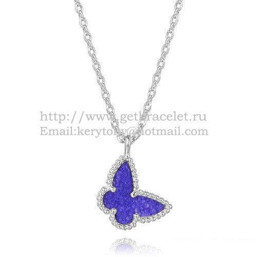 Van Cleef Arpels Lucky Alhambra Butterfly-Halskette aus Weißgold mit Lapis-Stein und Perlmutt