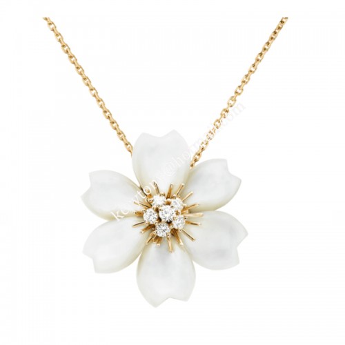 Van Cleef Arpels Rose de Noel Clip-Anhänger aus Gelbgold mit Diamant und Perlmutt in Kanada