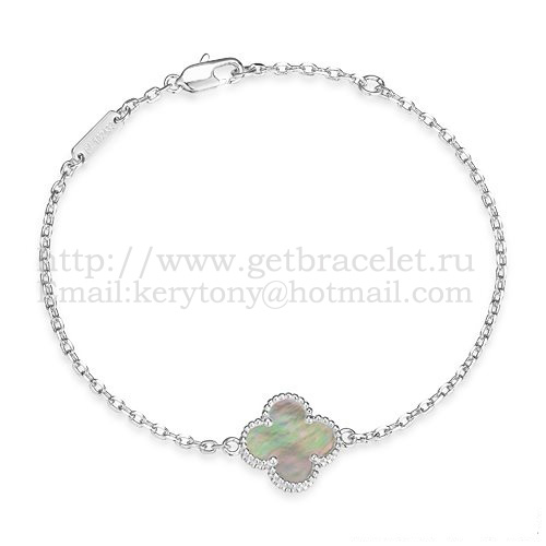 Van Cleef Arpels Sweet Alhambra Armband aus Weißgold mit grauem Perlmutt