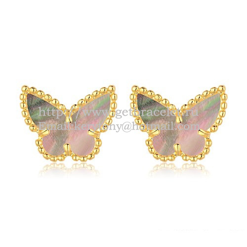 Van Cleef Arpels Sweet Alhambra Schmetterlingsohrringe Gelbgold mit grauem Perlmutt