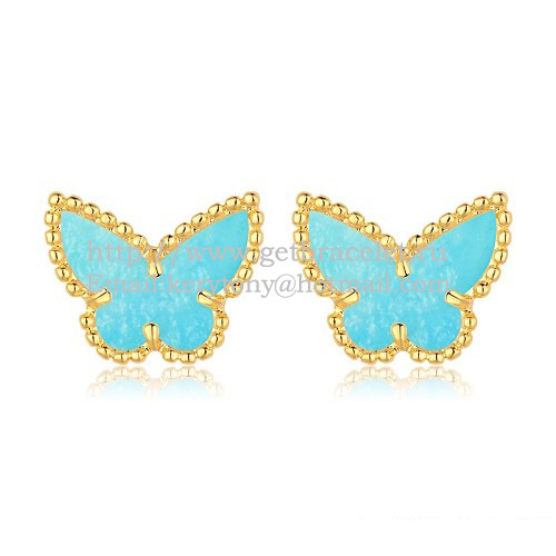 Van Cleef Arpels Sweet Alhambra Schmetterlingsohrringe Gelbgold mit türkisfarbenem Perlmutt
