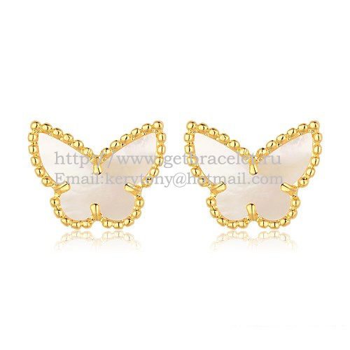Van Cleef Arpels Sweet Alhambra Schmetterlingsohrringe aus Gelbgold mit weißem Perlmutt