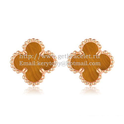 Van Cleef Arpels Sweet Alhambra Ohrringe aus Roségold mit Tigerauge-Perlmutt
