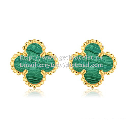 Van Cleef Arpels Sweet Alhambra Ohrringe aus Gelbgold mit Malachit-Perlmutt