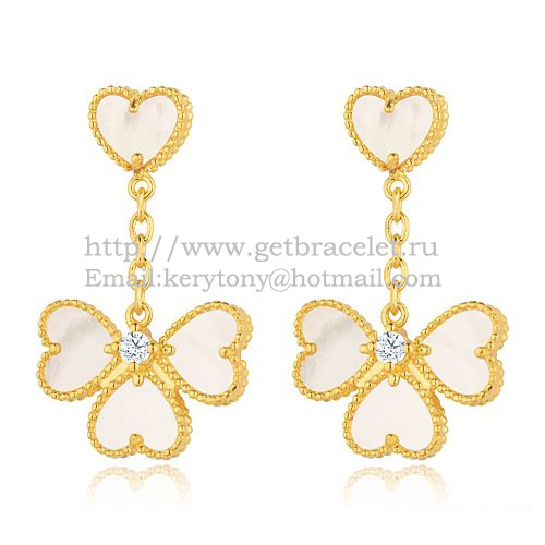 Van Cleef Arpels Sweet Alhambra Effeuillage Ohrringe Gelbgold mit weißem Perlmutt