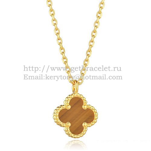 Van Cleef Arpels Sweet Alhambra Anhänger Gelbgold mit Tigerauge-Perlmutt 9 mm